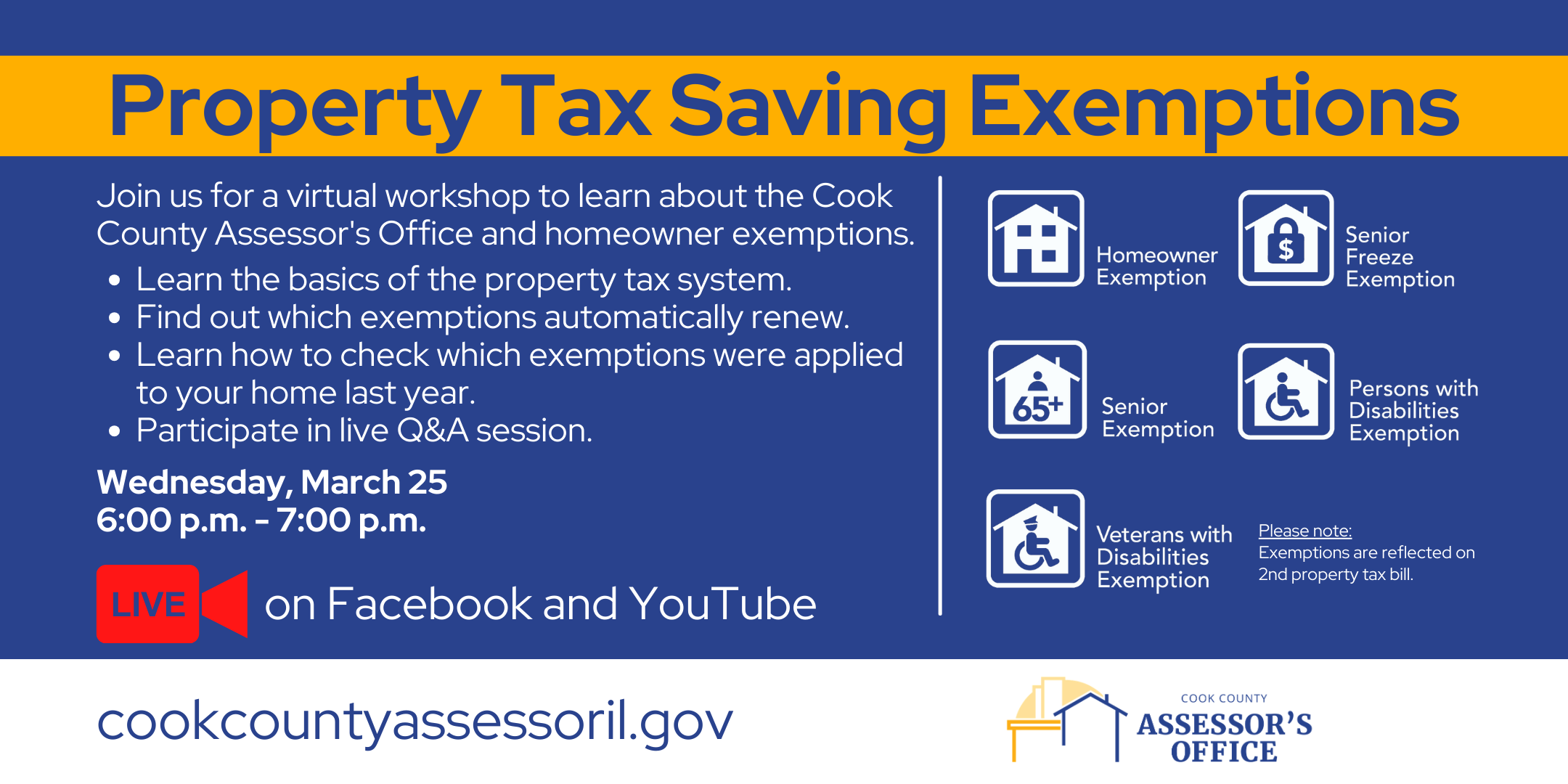 Join us for a virtual workshop to learn about the Cook County Assessor's Office and homeowner exemptions.