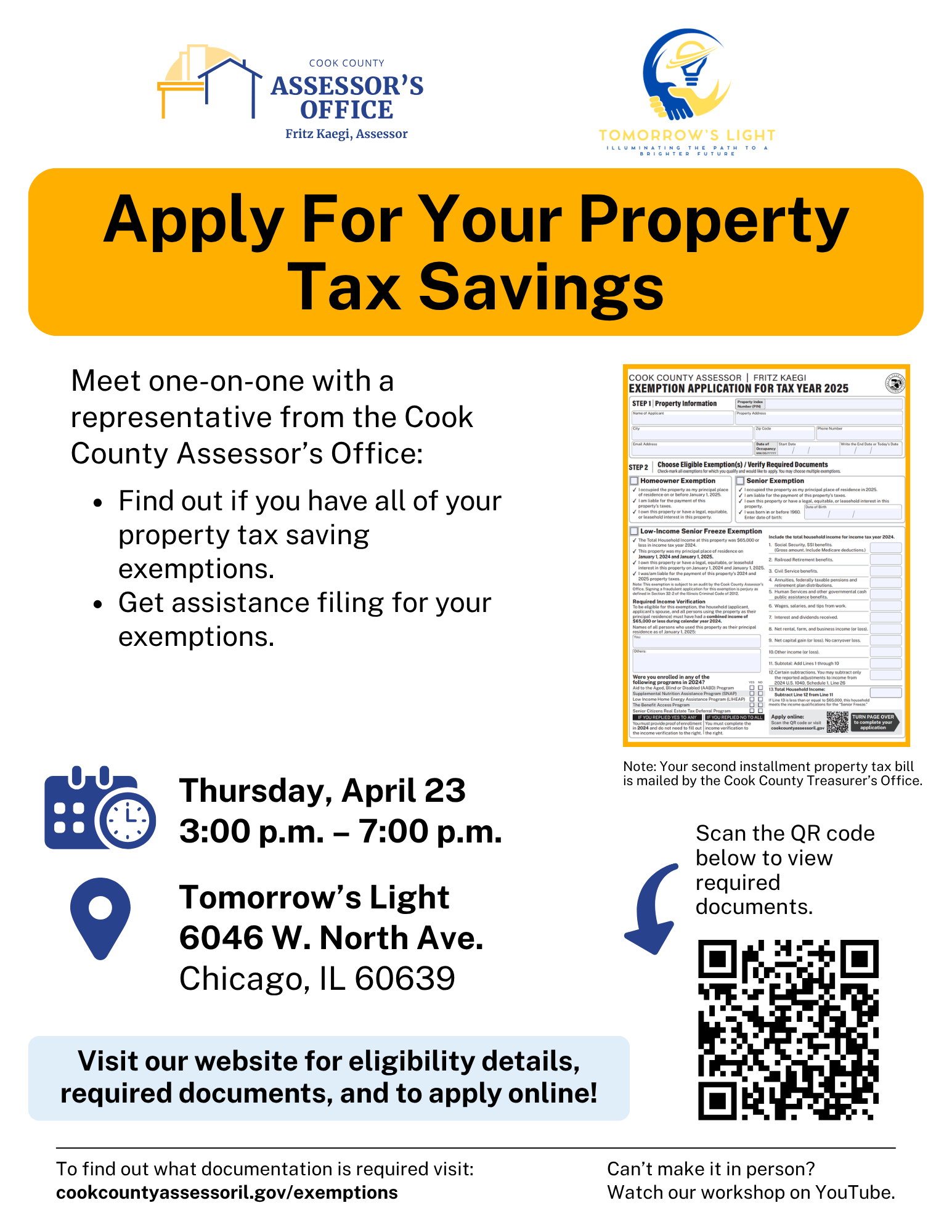 Meet one-on-one with a representative from the Cook County Assessor’s Office:
