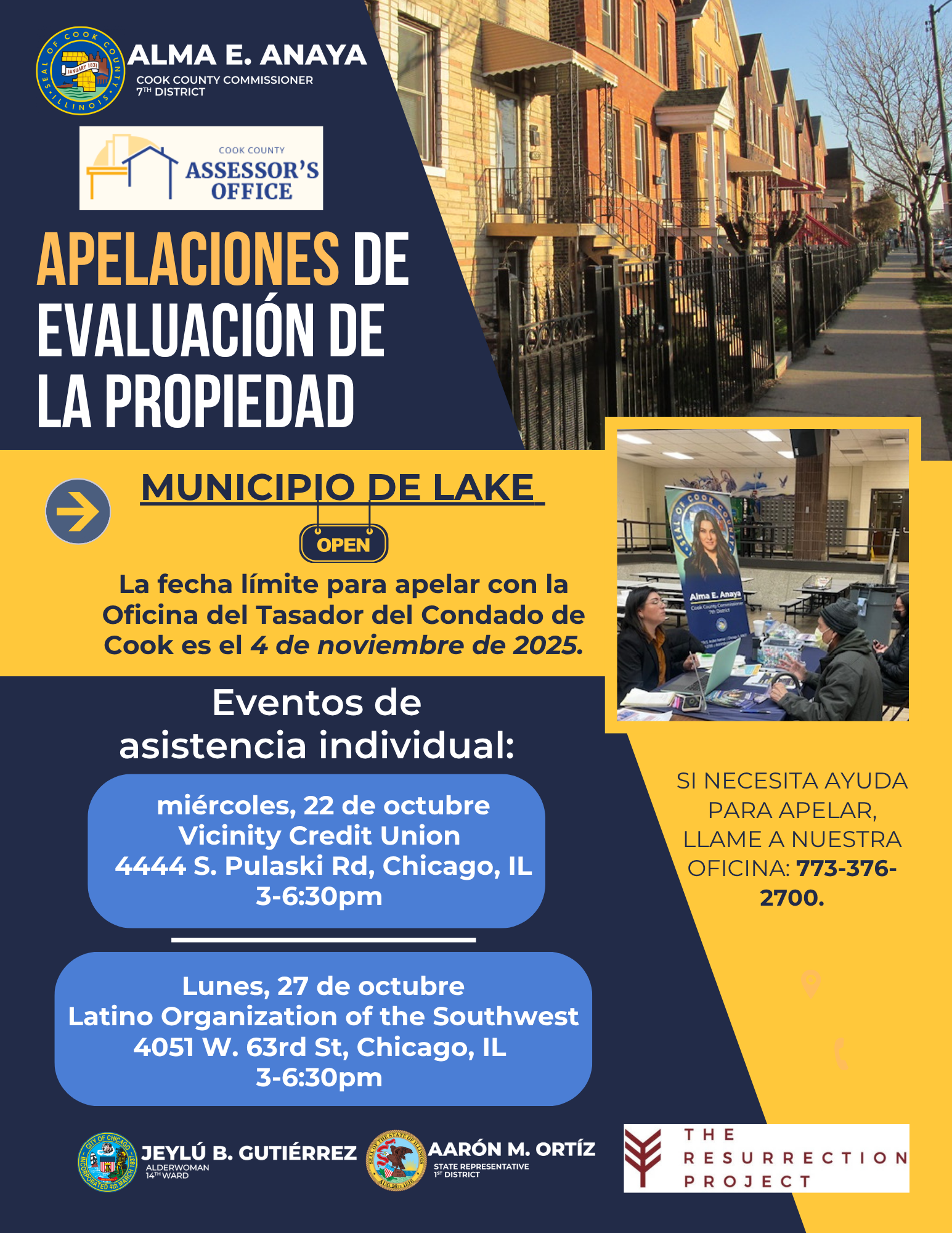 Reúnase personalmente con un representante de la Oficina del Asesor del Condado de Cook para aprender sobre las apelaciones en Lake.